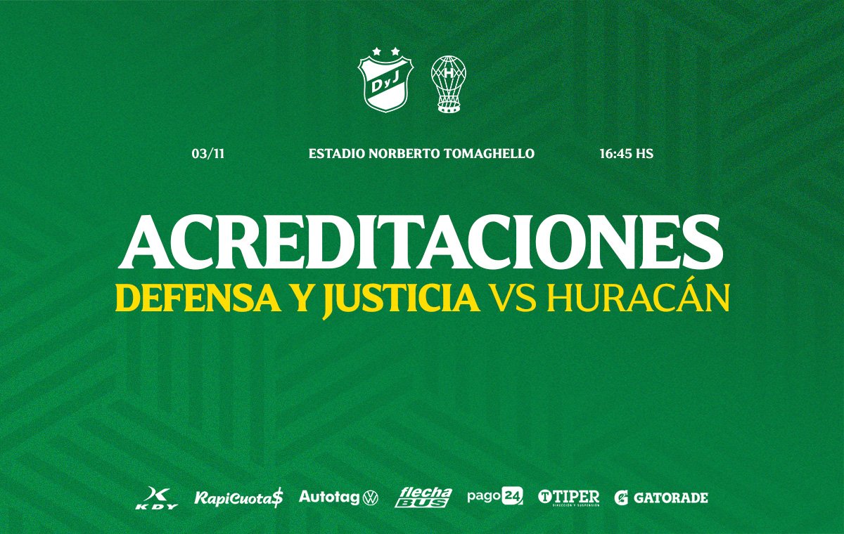 Se encuentra abierta la inscripción de prensa para el partido Defensa y Justicia vs Huracán a disputarse el lunes 3 de noviembre en el Tito Tomaghello. El plazo para acreditarse es de hoy martes 28 hasta el jueves 30 de octubre a las 17.00hs.
