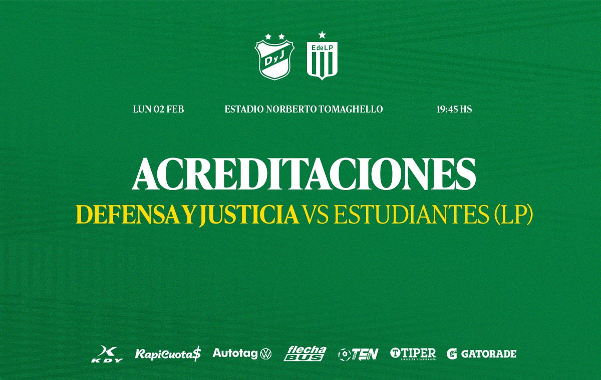 Se encuentra abierta la inscripción de prensa para el partido Defensa y Justicia vs Estudiantes LP a disputarse el lunes 2 de febrer en el Tito Tomaghello. El plazo para acreditarse es de hoy martes 27 hasta el jueves 29 de enero a las 20.00hs.